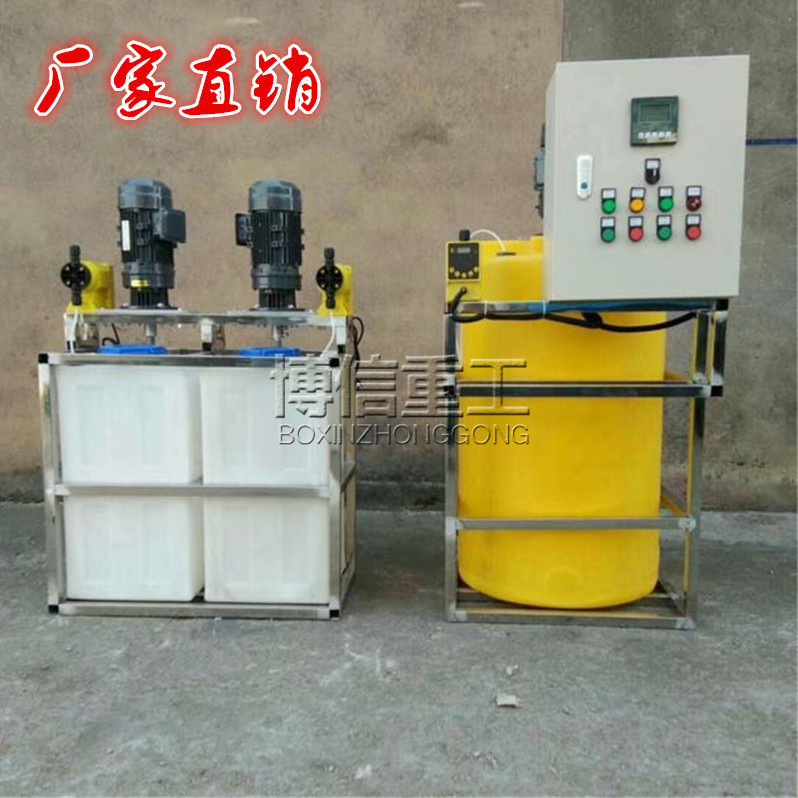 在水处理工程中加药箱主要用于各种药剂的加药搅拌机、溶解、储存,再通过计量泵或水射器将药液投加到各投加点。加药箱外形分为方形和圆形,材质为聚乙烯(PE),通过滚塑技术一次成型,上部预设了计量泵及搅拌机的安装位置,加药搅拌机、加药箱、计量泵三合一,使用方便。它的加药搅拌机是采用摆线齿轮合行星传动原理,具有钮距大、传动效率高、功率大、寿命长、价格低,是环保加药装置的配套产品,加药箱预设的计量泵及搅拌机安装位置,并不完全通用于所有品牌、型号的计量泵及搅拌机,具体安装时需要由客户根据实际情况作出相应调整。